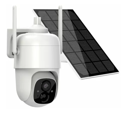 Câmara de vigilância branca com antenas e painel solar preto