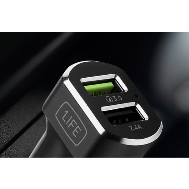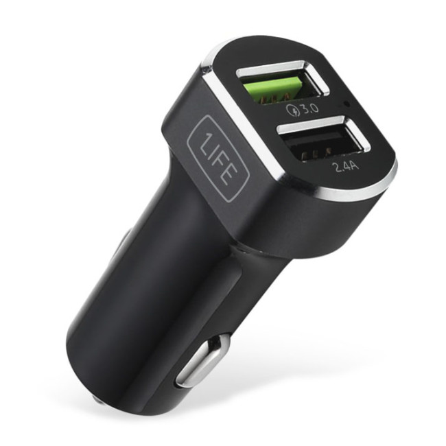 1Life pa:dual USB auto é um adaptador auto USB com duas portas de carregamento, incluindo uma porta compatível com Quick Charge™.