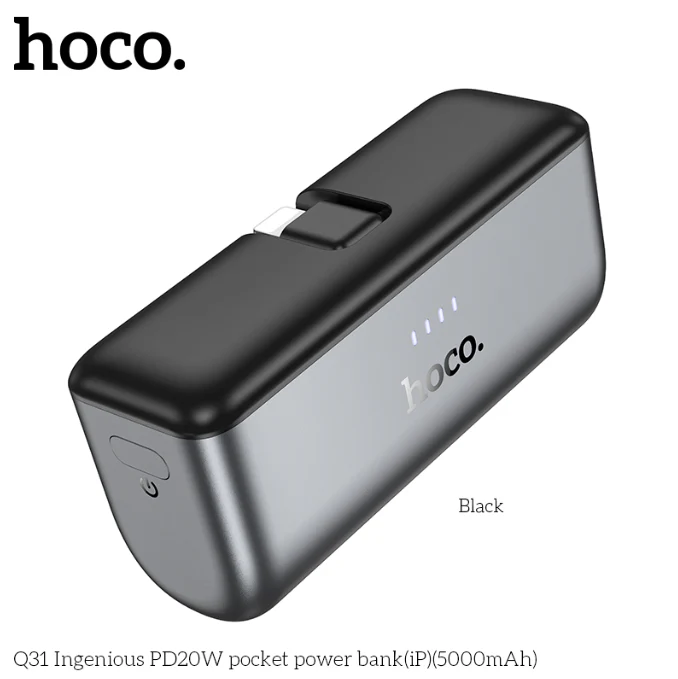 O HOCO Q31 Ingenious PD20W 5000mAh Pocket Power Bank é a melhor solução de carregamento portátil para seus dispositivos. Com 5000mAh de potência e carregamento Power Delivery (PD) de 20W, ele oferece velocidades de carregamento rápidas para smartphones, tablets e outros dispositivos alimentados por USB. Seu design compacto permite fácil portabilidade, tornando-o perfeito para viagens, trabalho ou uso ao ar livre. Equipado com uma entrada Tipo C e saída Lightning, este power bank é versátil e eficiente, garantindo que você permaneça energizado onde quer que vá.