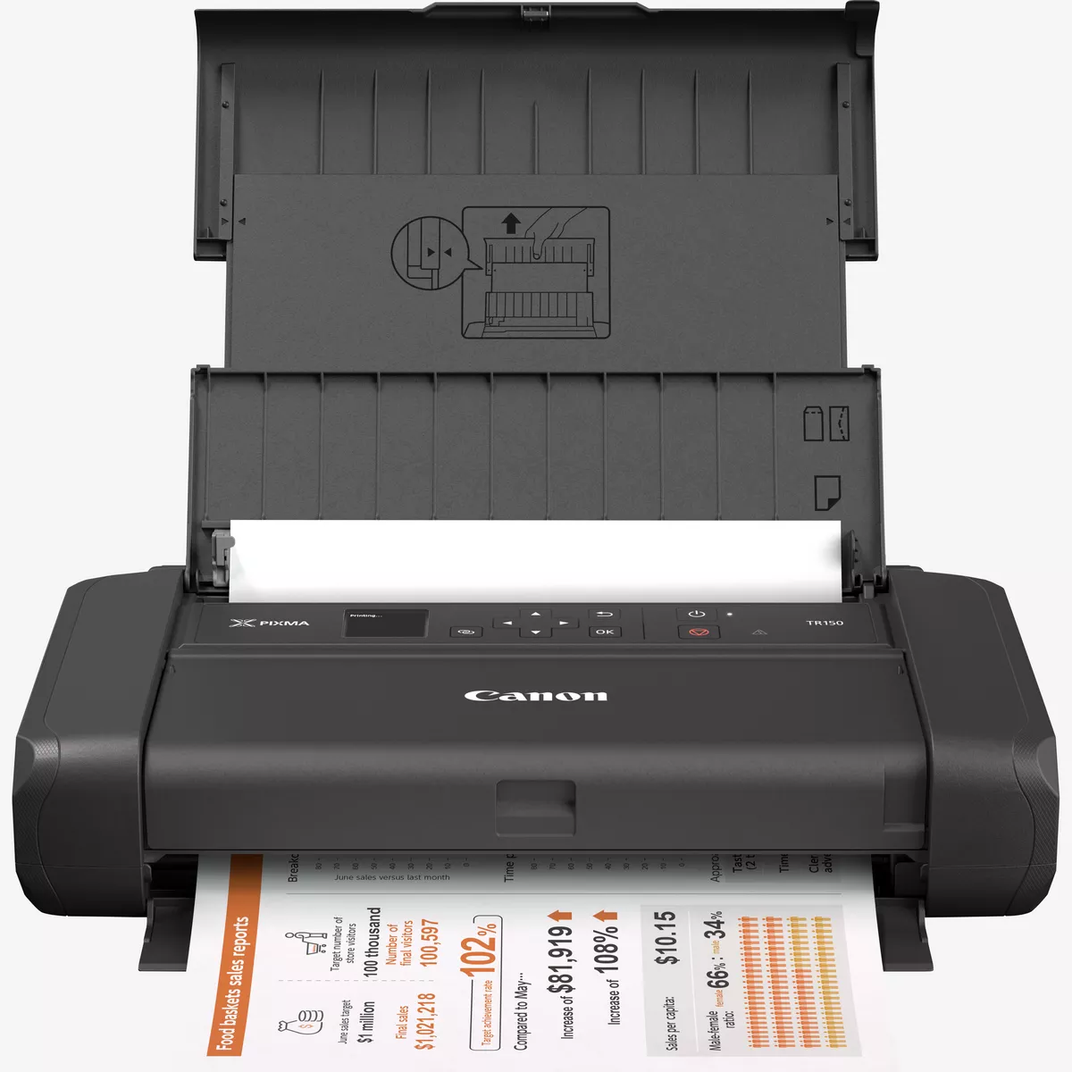 Imprima onde quer que o seu trabalho o leve. Carregue esta impressora portátil resistente com um cabo USB no carro, no escritório ou em casa e trabalhe de forma flexível com controlo de impressão remota sem fios a partir da aplicação grátis Canon PRINT (iOS e Android) ou AirPrint (iOS), Mopria (Android) e Windows 10 Mobile. O ecrã OLED de 1,44" intuitivo garante ainda controlo e manutenção simples, enquanto o suporte para bandas Wi-Fi de 2,4 e 5 GHz oferece conetividade perfeita. Para resultados profissionais, confie no sistema de tinta híbrido com tinteiro preto à base de pigmentos e a cores à base de corantes, para desfrutar de texto nítido e imagens vívidas com duração de até 100 anos em álbum¹. Em dias agitados, mantenha o ritmo com velocidades de impressão de 9ipm em monocromático e 5,5ipm a cores² e guarde até 5 modelos personalizados³ na impressora para acesso ainda mais rápido.