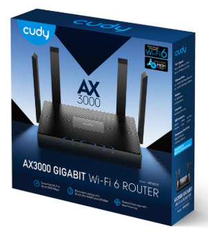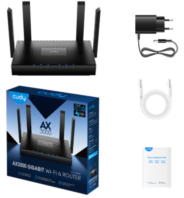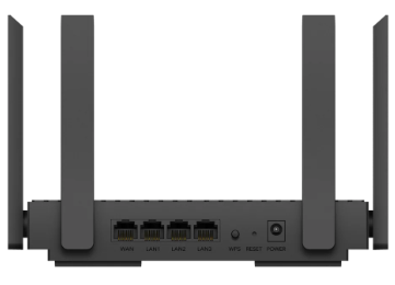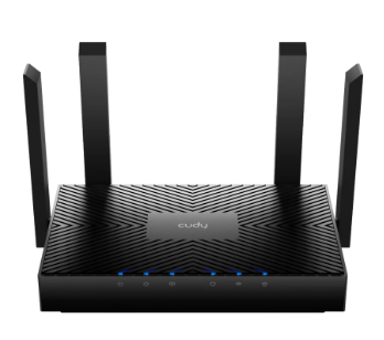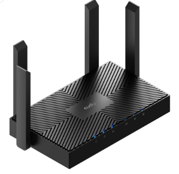 Um Router WiFi 6 com quatro portas Gigabit, adequado para internet residencial de até 1000 Mbps, conectando vários dispositivos e reduzindo a latência.