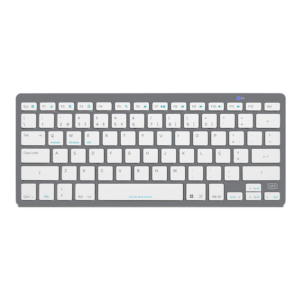 Teclado ultrafino compatível com Windows, Mac, iOS e Android. Com teclas de atalho e conexão Bluetooth.