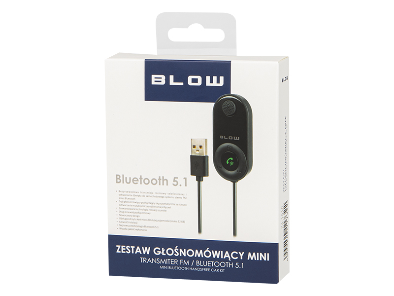 Mãos-livres de alta qualidade com um transmissor FM "mini" conectado a cabo USB. O produto aumenta a funcionalidade até mesmo do rádio mais simples do carro, aumentando assim o conforto de viagem. Com este dispositivo, também pode tocar música pelo telemóvel, cartões de memória microSD ou qualquer outro dispositivo com função Bluetooth.